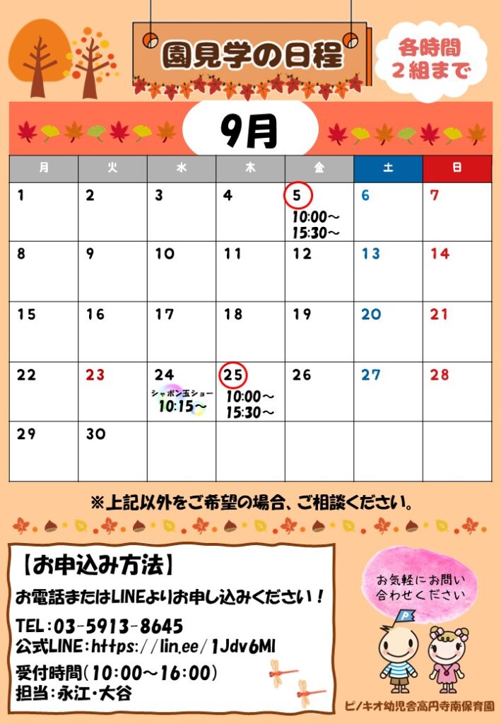 9月の園見学 日程のご案内 #高円寺南保育園