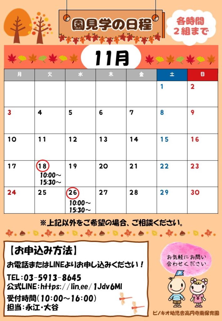 11月の園見学 日程のご案内 #高円寺南保育園