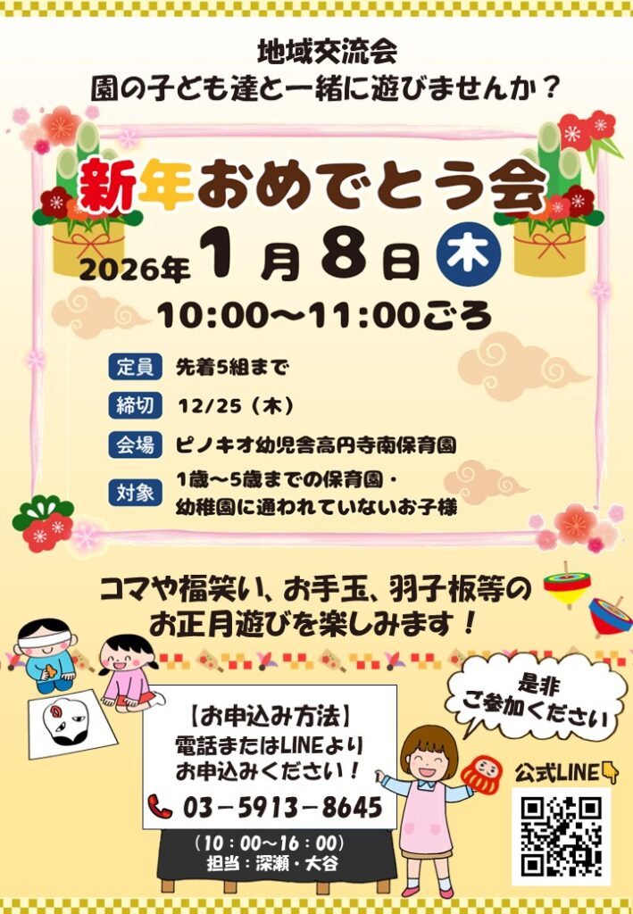 【対象】1歳~5歳(保育園・幼稚園に通われていないお子様)