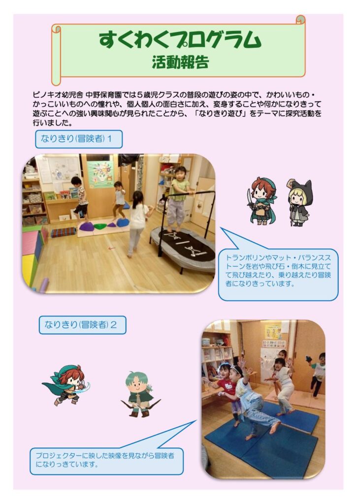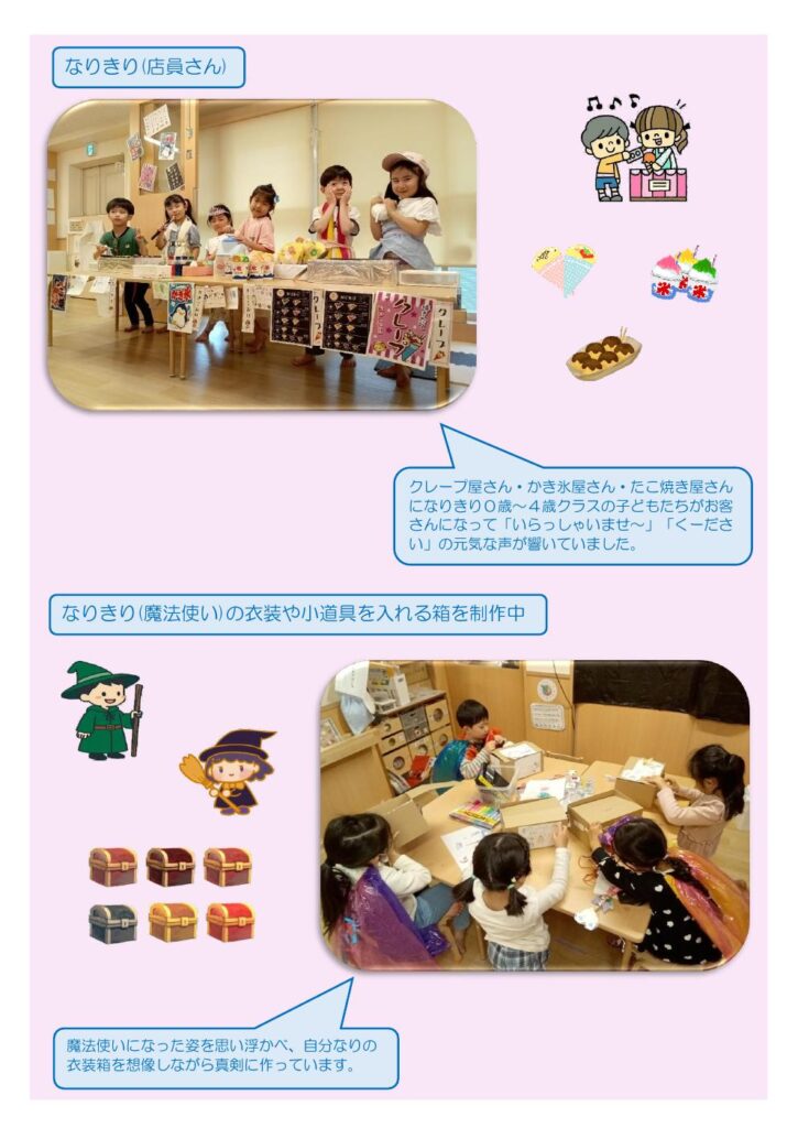 日頃の子どもたちの様子から「なりき遊び」をテーマに活動しました。
